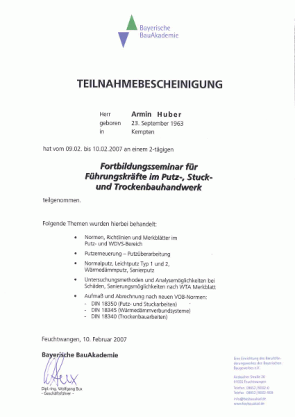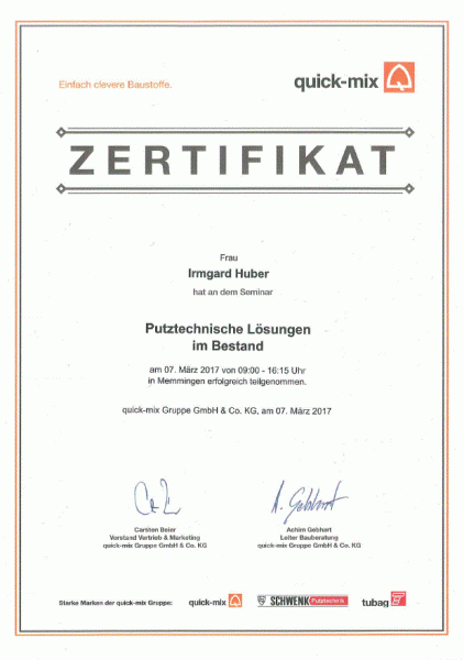Wir freuen uns über Ihr Interesse an der Huber Bau- und Verputz GmbH.