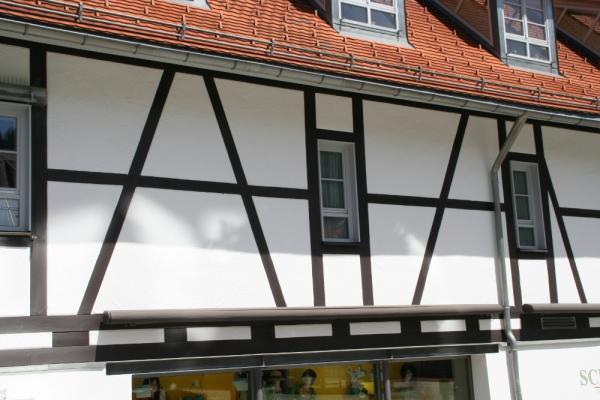 In aufwendiger Handarbeit wurden bei diesem Fachwerkgebäude die Gefache mit reinem Kalkputz 2-lagig beschichtet.