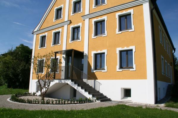 Dieser Pfarrhof wurde 2014 vollständig saniert. Auf Poroton-WDF Außendämmung wurden insgesamt 430 m² Fassadenfläche verputzt. Die Besonderheit dieses Objektes liegt in den vielen aufwendigen Details des Gebäudes, wie den Fensterfaschen, Gesimsen und den über Eck-gezogenene Putzlisenen im Giebel-Bereich.
